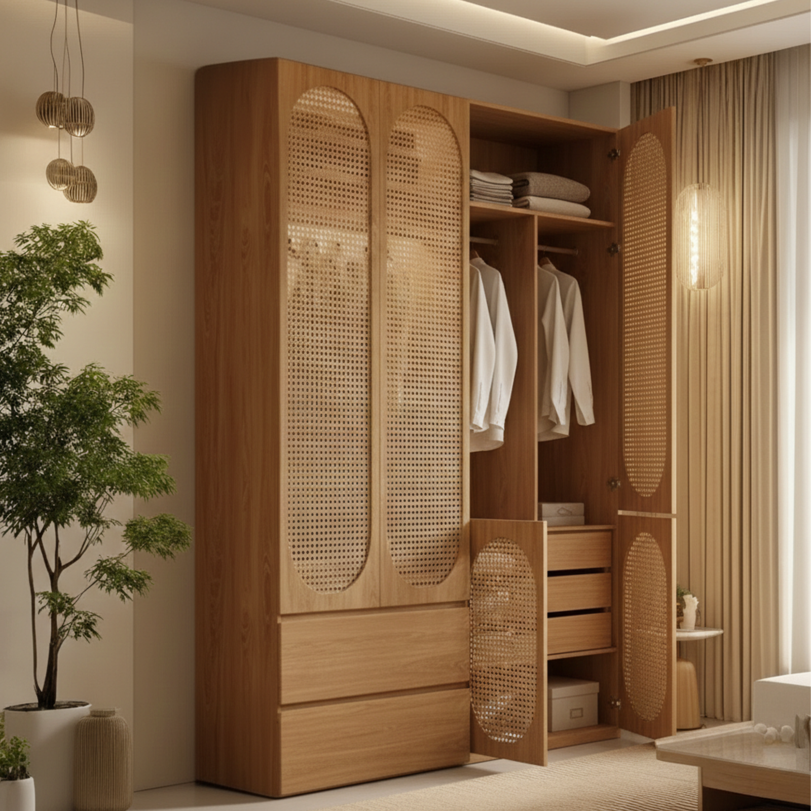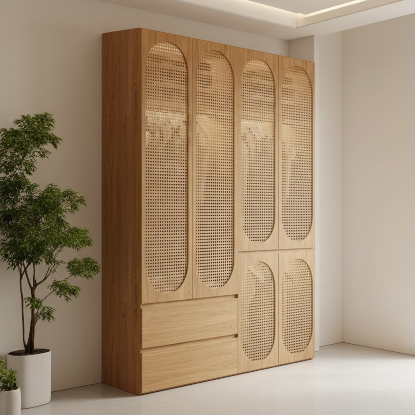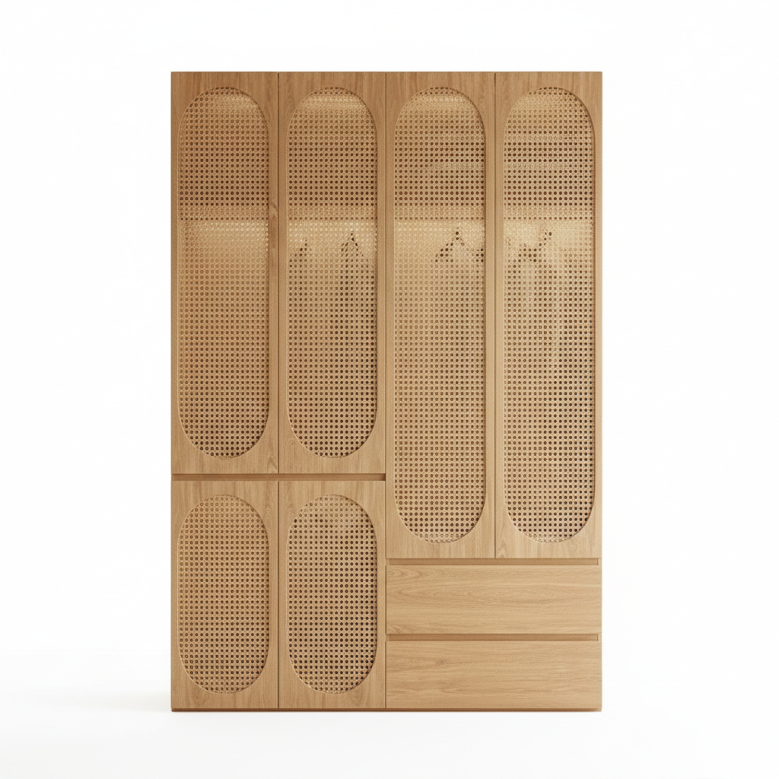 ALFA Wardrobe – Aro Veneer Plywood & Natural Cane