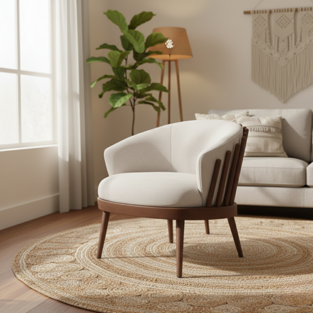 The Belvoir chair, with its curved and luxurious design, offers high comfort with excellent materials, ideal for upscale living rooms and relaxation corners.