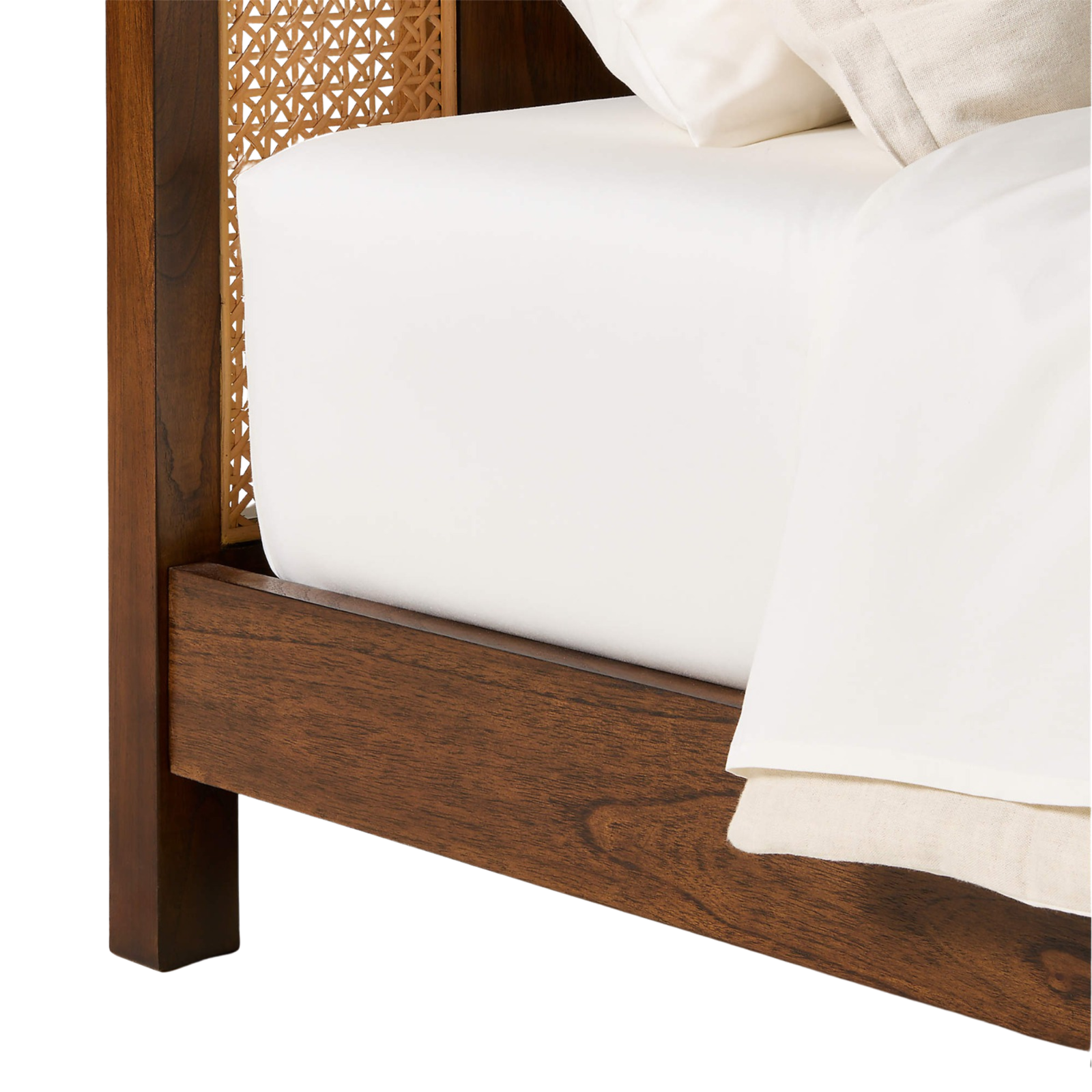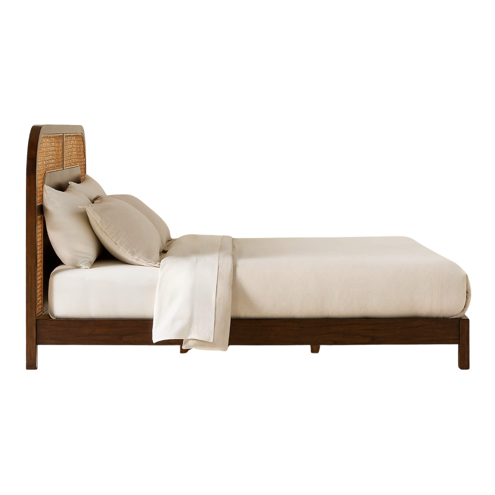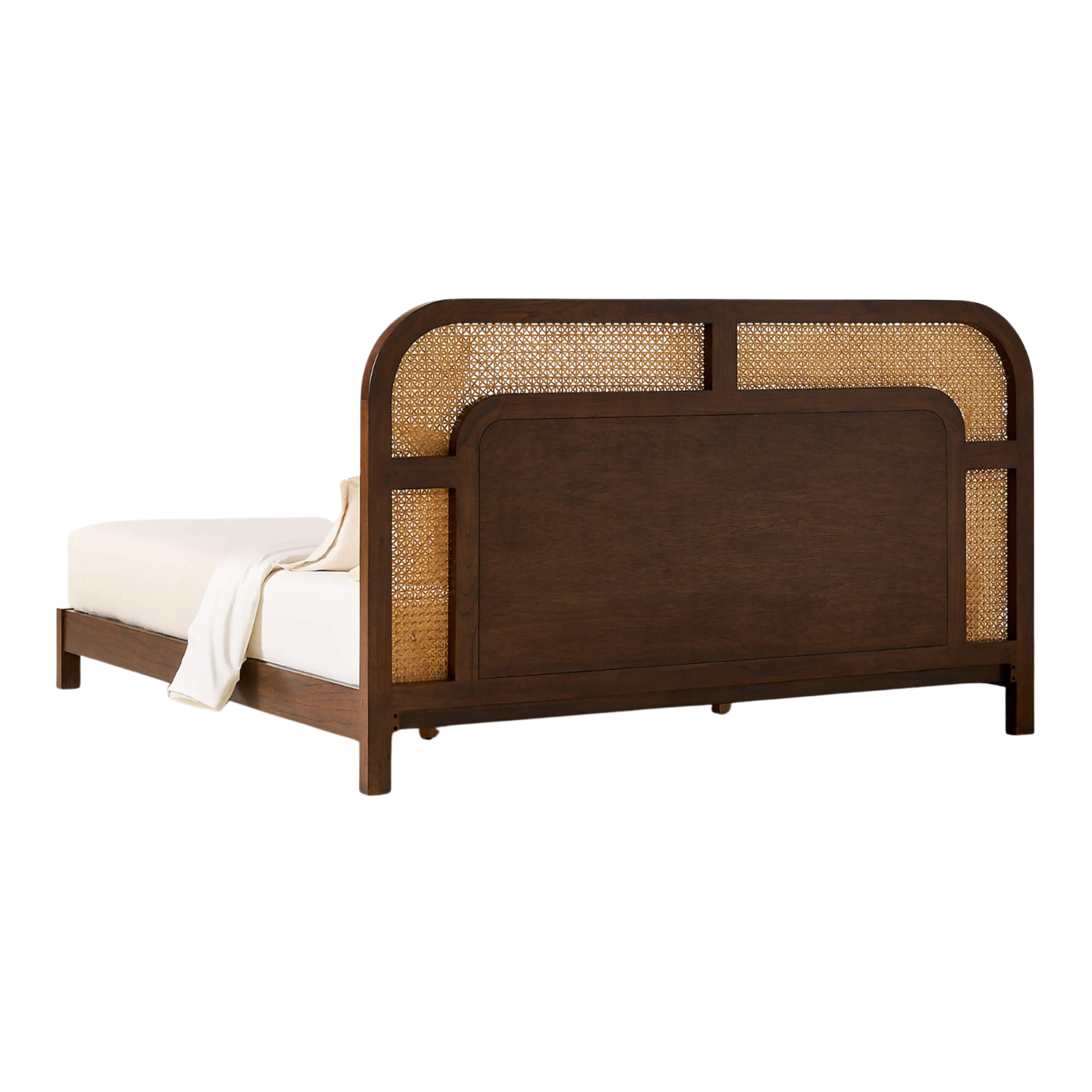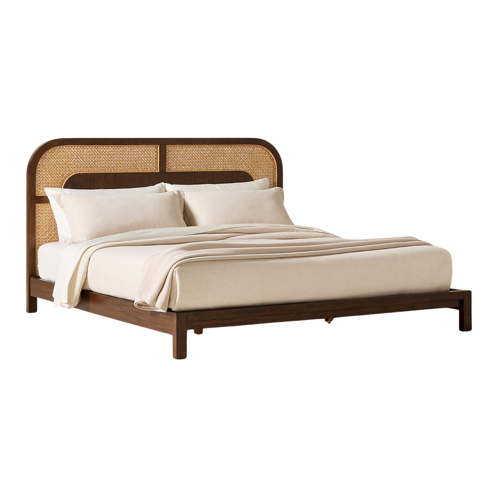 Materials: Solid beech wood, handwoven natural cane headboard