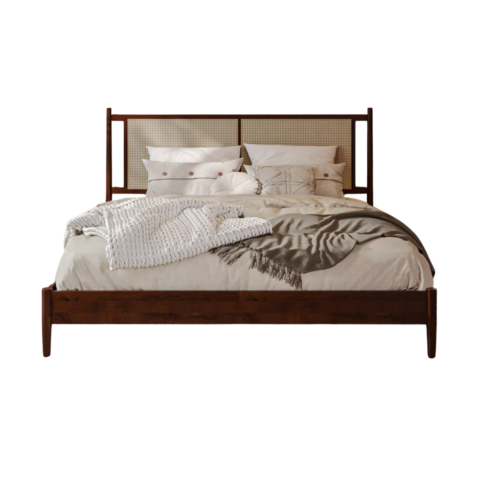 Materials: Solid beech wood frame, handwoven natural cane headboard